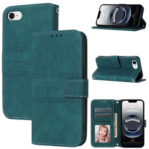 Funda para iPhone 16E Piel Sintética Efecto Rayas en Relieve (Verde Oscuro)