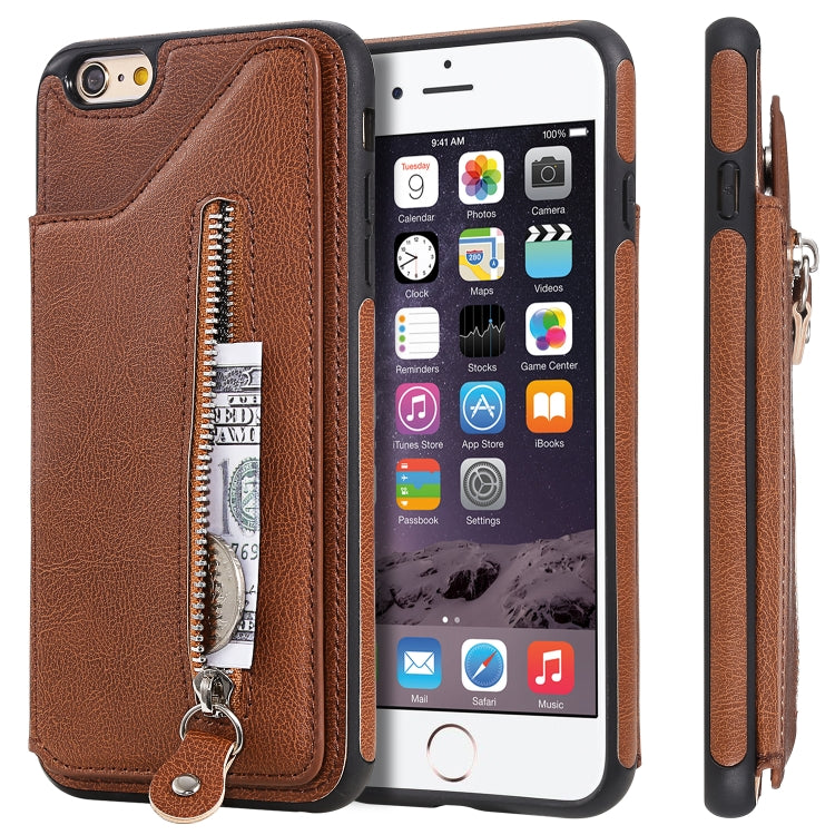 Funda Protectora para iPhone 6 Plus a Prueba de Golpes con Cremallera y Doble Hebilla (Marrón)