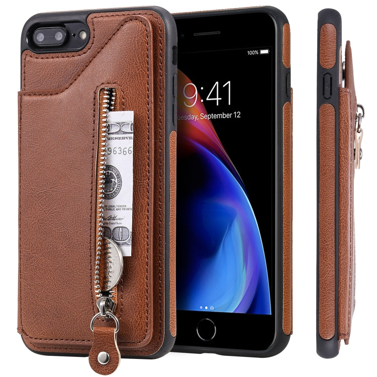 Funda Protectora para iPhone 8 Plus y 7 Plus a Prueba de Golpes con Cremallera y Doble Hebilla (Marrón)