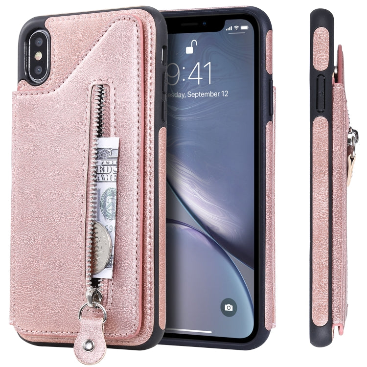 Funda Protectora para iPhone Xs Max Doble Hebilla Cremallera a Prueba de Golpes (Oro Rosa)