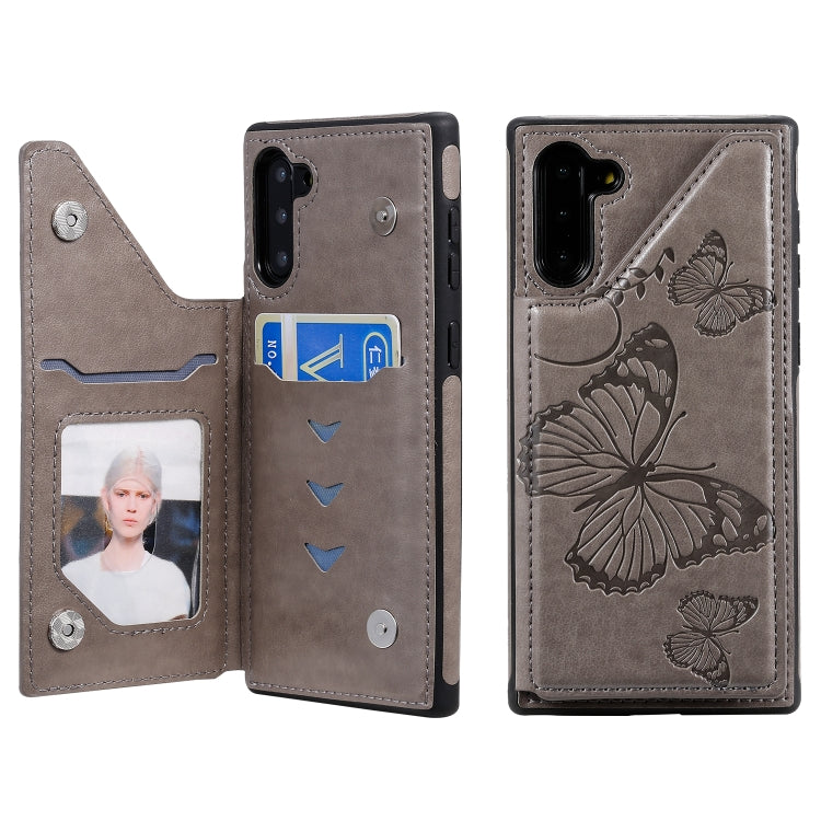 Funda Protectora Galaxy Note10 Patrón Mariposa con Soporte Ranuras y Marco de Fotos (Gris)