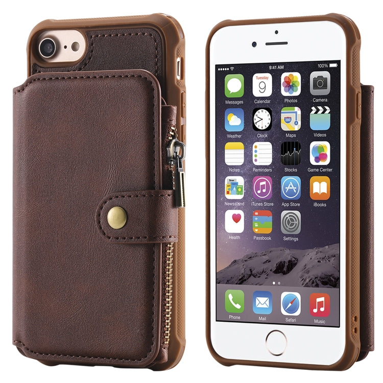 Estuche Protector 2 en 1 para iPhone 7 Plus 8 Plus con Cremallera Ranuras Tarjetas Soporte (Marrón)