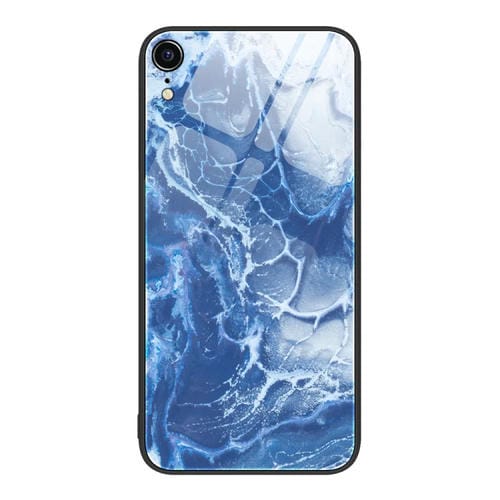 Funda Protectora de Vidrio para iPhone Xr con Patrón de Mármol (Océano Azul)