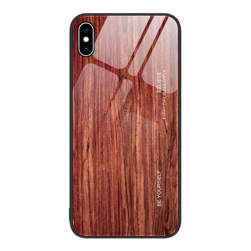 Funda Protectora Vidrio Grano de Madera para iPhone Xs Max (Marrón Oscuro)