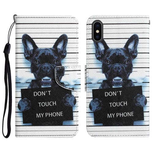 Estuche para Teléfono iPhone Xs Max Cuero con Dibujo Coloreado (Perro Negro)