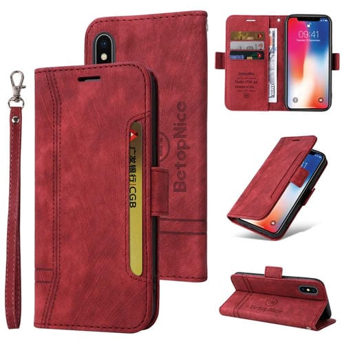 Estuche para Teléfono Betopnice iPhone X / Xs Cuero con Hebilla de Doble Cara (Rojo)