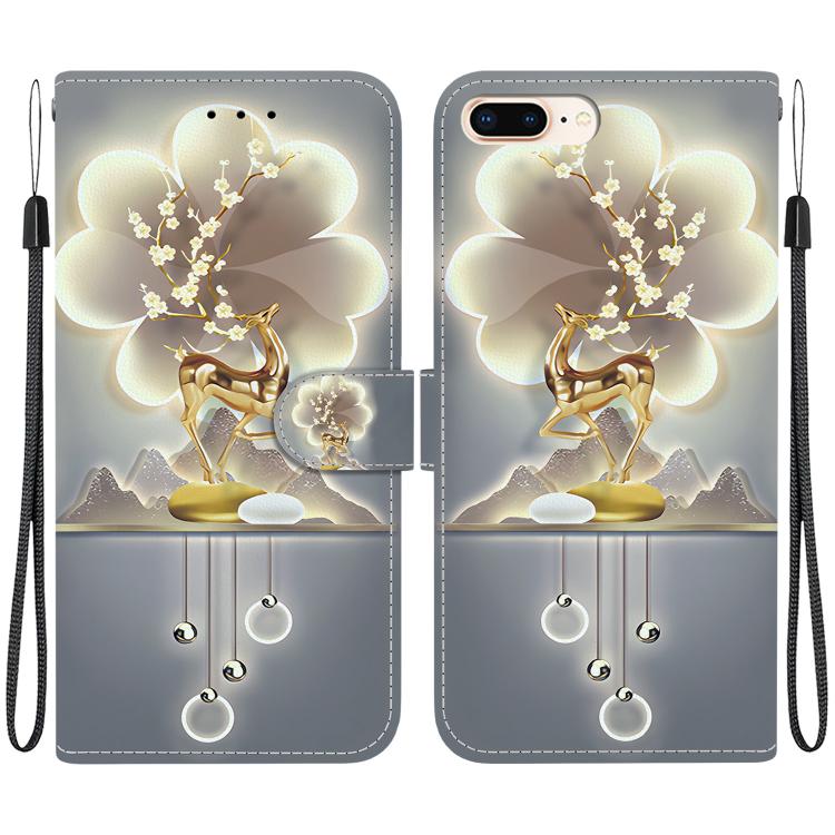 Funda de Cuero con Dibujo de Colores y Textura de Cristal para iPhone 7 Plus/8 Plus (Ciervo Sika)