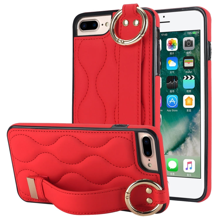 Funda para Teléfono iPhone 7 Plus Antideslizante Cobertura Completa Anillo PU con Muñequera (Rojo)