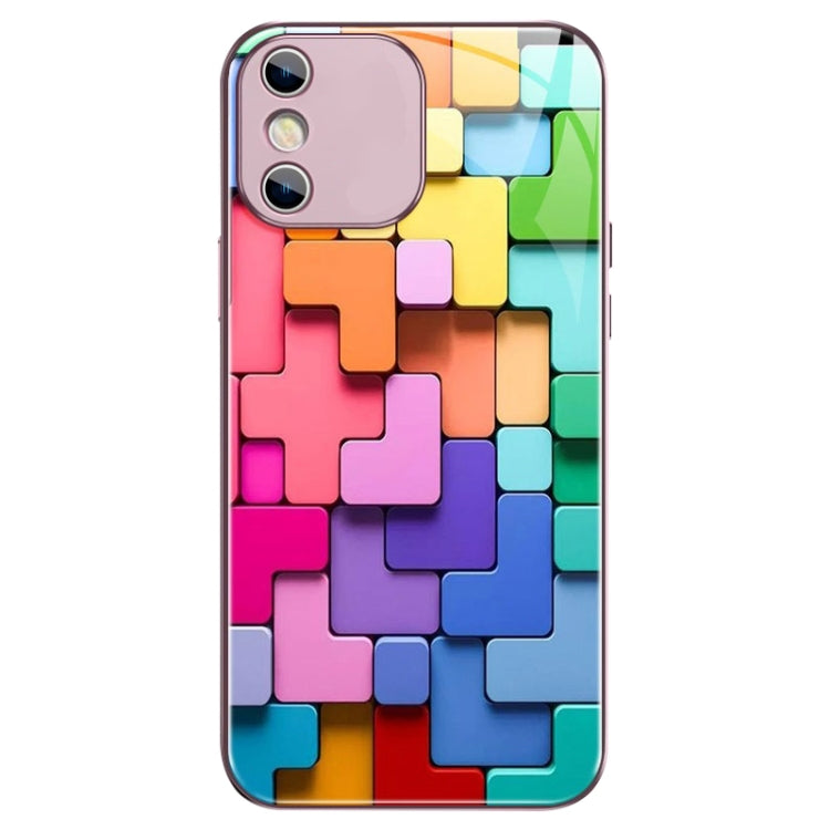Funda para iPhone 6S Plus 6 Plus Patrón Ladrillos Juguete Vidrio a Prueba de Golpes (Rosa)
