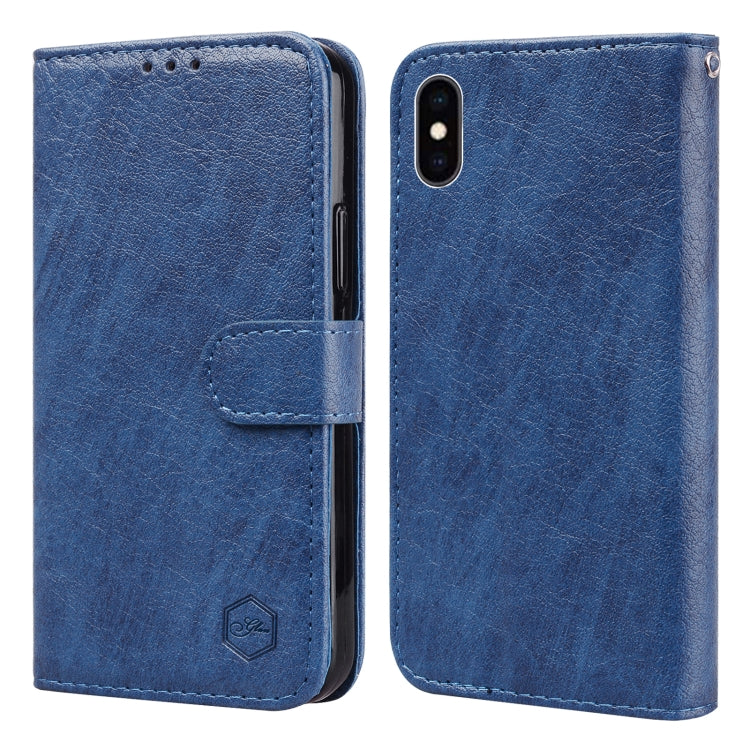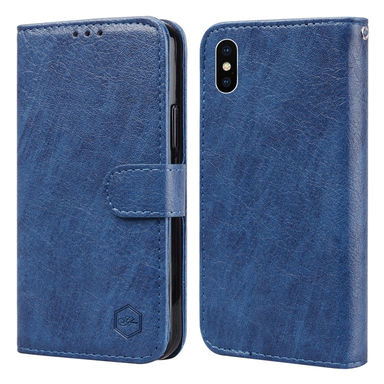 Funda para Teléfono iPhone Xr Skin Feeling Oil Leather Texture PU + TPU (Azul Oscuro)
