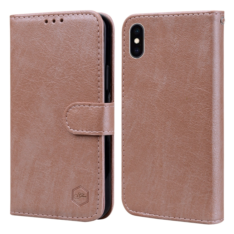 Funda para Teléfono iPhone Xs Max Skin Feeling Oil Textura de Cuero Pu + TPU (Champán)