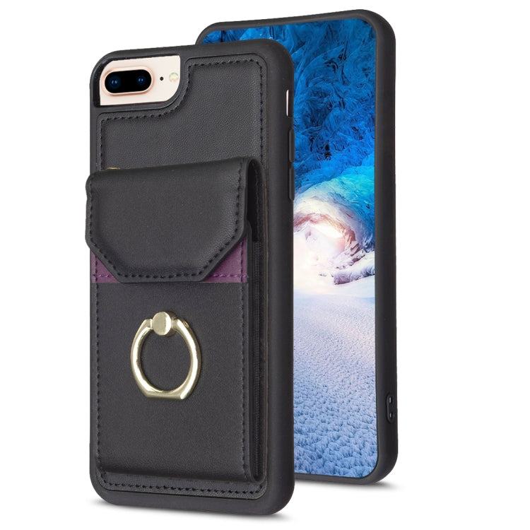 Funda para Teléfono Bf29 para iPhone 8 Plus/7 Plus con Soporte para Anillo y Bolsa para Tarjeta (Negro)