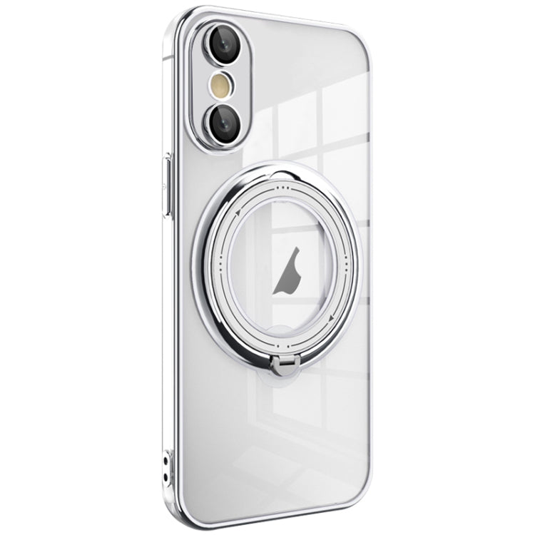 Estuche para teléfono iPhone Xs / X Galvanoplastia Magsafe Soporte Rotación 360 grados (Plata)