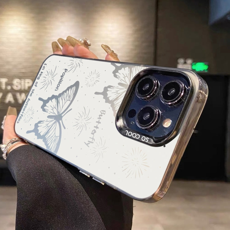 Funda híbrida TPU para iPhone Xr con pintura plateada mariposa hueca blanca