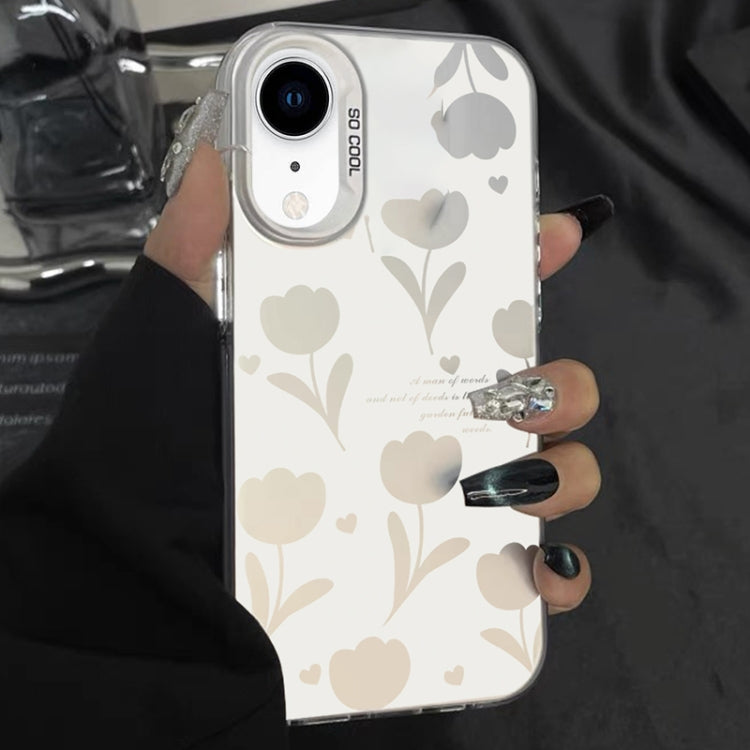 Funda híbrida para iPhone Xr TPU para PC con pintura plateada (Tulipanes huecos blancos)