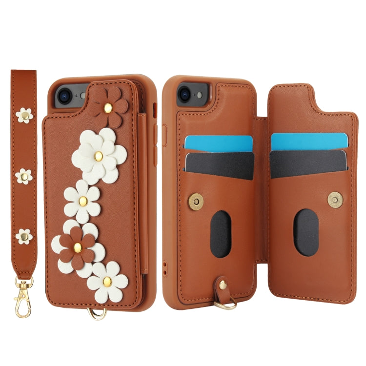 Funda de Cuero para Teléfono iPhone 8 Plus/7 Plus Estampado de Flores Cruzadas (Marrón)