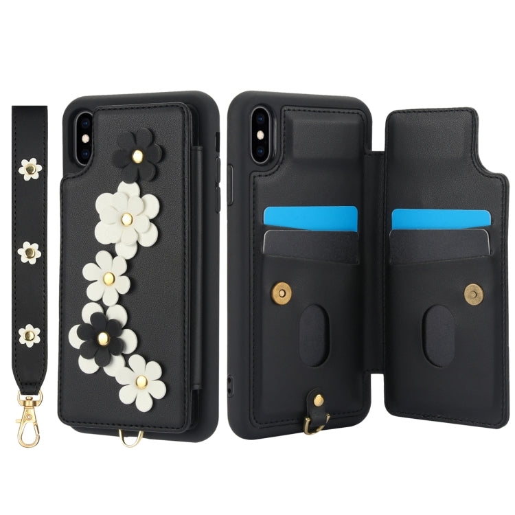 Funda de Cuero para Teléfono iPhone Xs Max Estampado Flores Cruzadas (Negro)