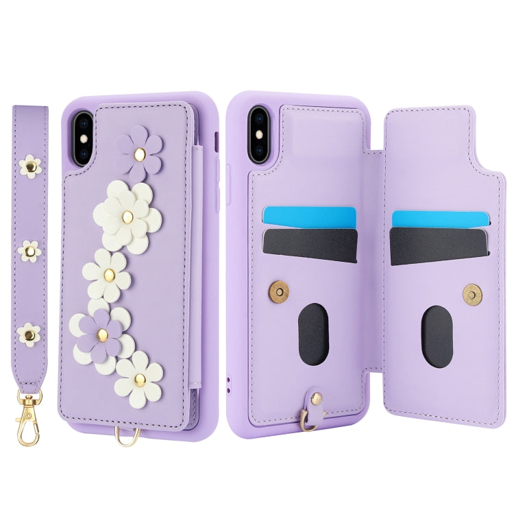 Funda de Cuero para Teléfono iPhone Xs Max Estampado de Flores Cruzadas (Púrpura)