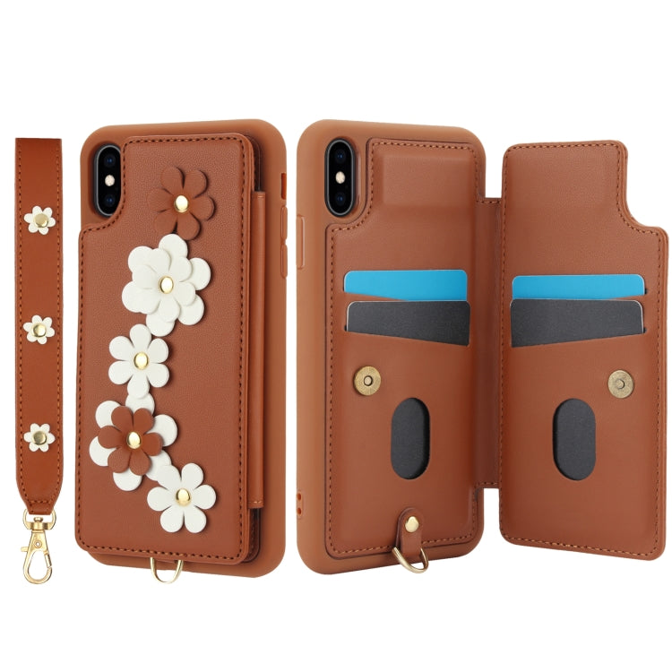 Funda de Cuero para iPhone Xs Max Estampado de Flores Cruzadas (Marrón)