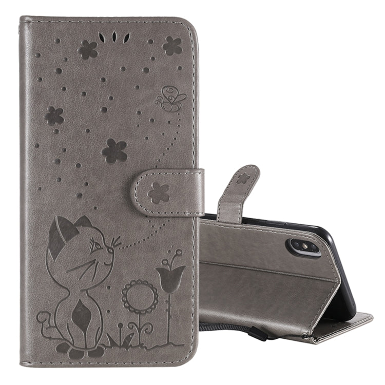 Funda para iPhone Xr Cat Bee Cuero con Tapa Horizontal Soporte y Ranuras para Tarjetas (Gris)