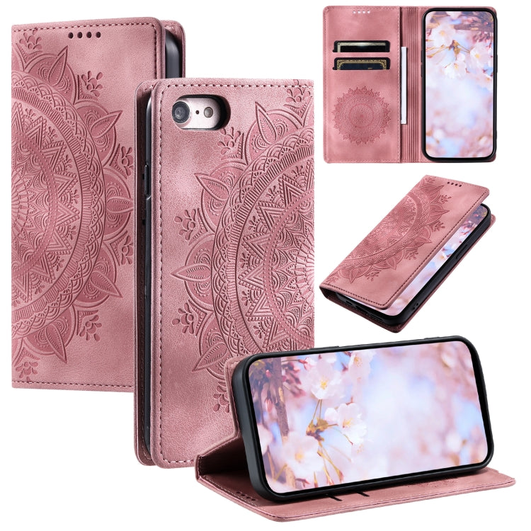 Funda para Teléfono iPhone SE 2022/2020/8/7 Cuero Magnético Relieve Tótem (Oro Rosa)