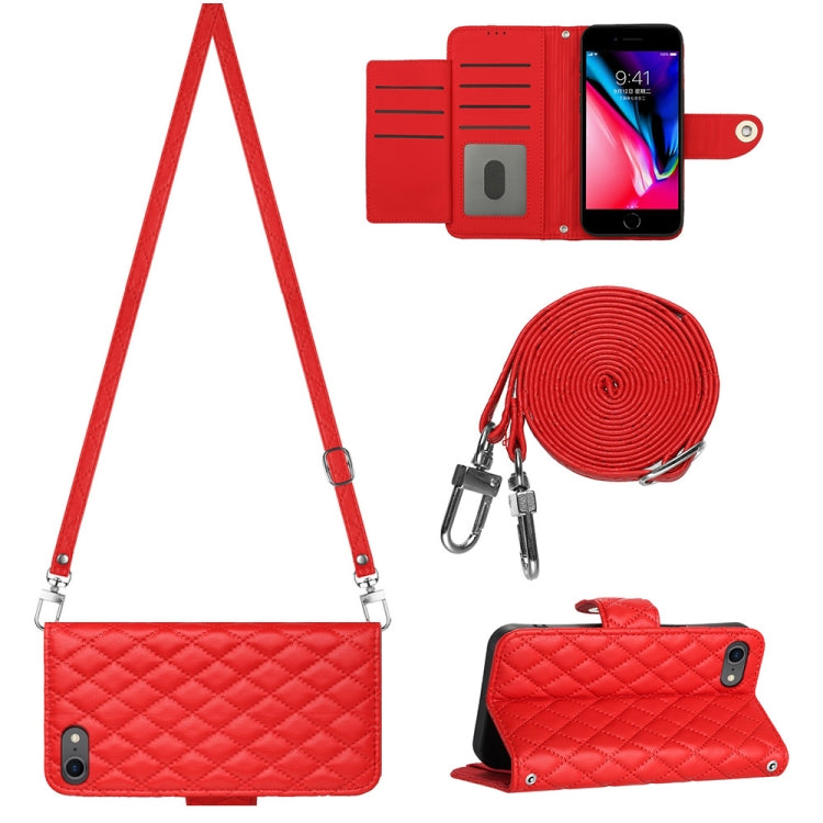 Funda para Teléfono iPhone SE 2022/2020/8/7 Cuero con Tapa Textura Rómbica y Cordón Largo (Rojo)