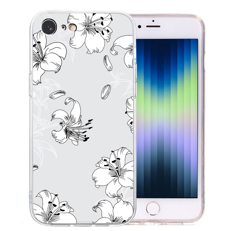 Funda de Teléfono TPU para iPhone SE 2022/SE 2020/8/7 con Patrón de Dibujo Flor Blanca (Transparente)