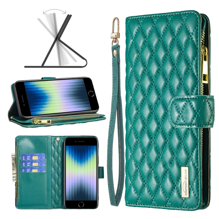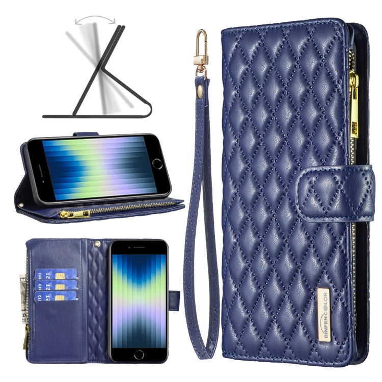 Funda Flip Leather Wallet para iPhone SE 2022 SE 2020 8 7 con Zipper y Diamond Lattice (Azul)