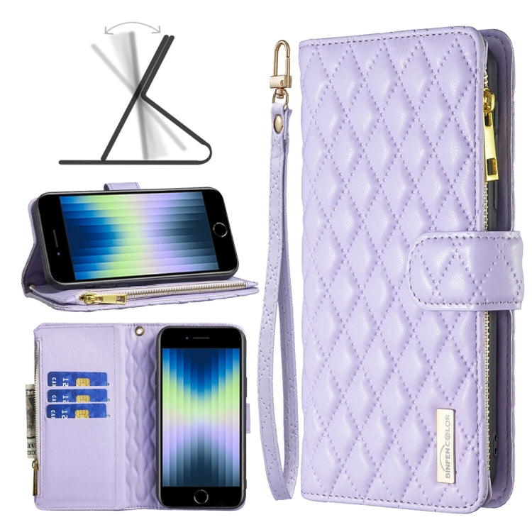Funda Flip Leather Wallet con Cremallera para iPhone SE 2022 / SE 2020 / 8 / 7 (Púrpura)
