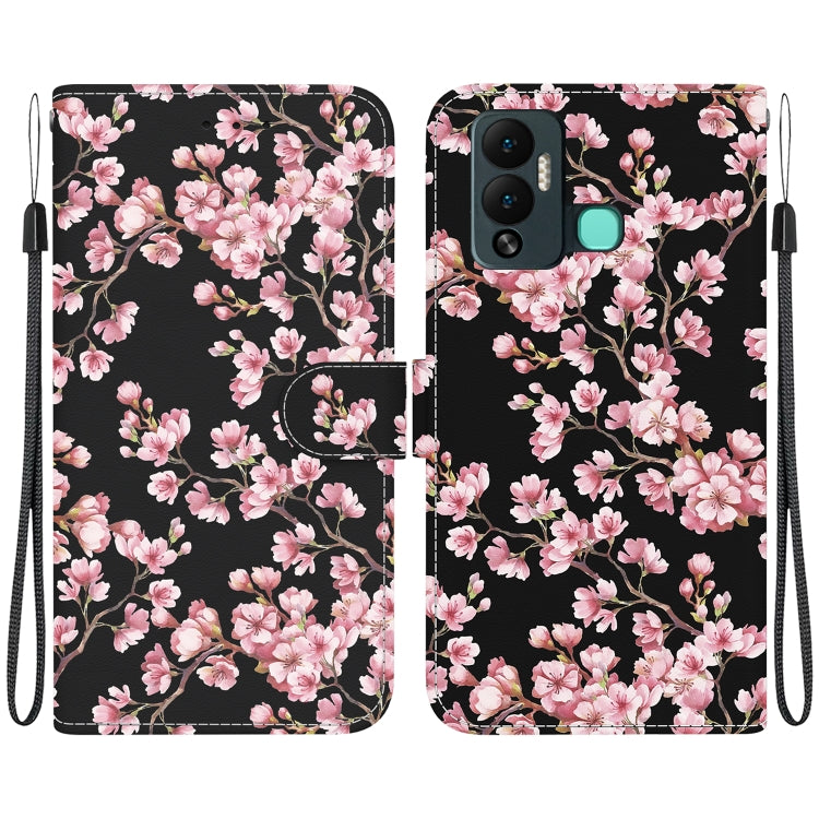 Estuche de Cuero para Infinix Hot 12 con Dibujo Coloreado y Textura de Cristal (Flor de Ciruelo)