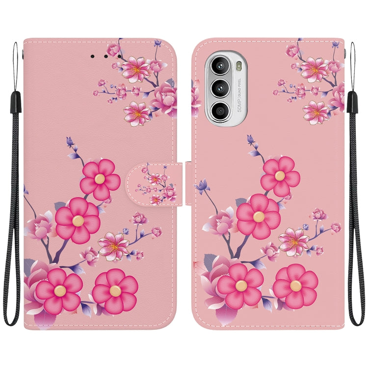 Estuche de Cuero para Motorola Moto G52 con Dibujo Coloreado y Textura de Cristal (Flores de Cerezo)