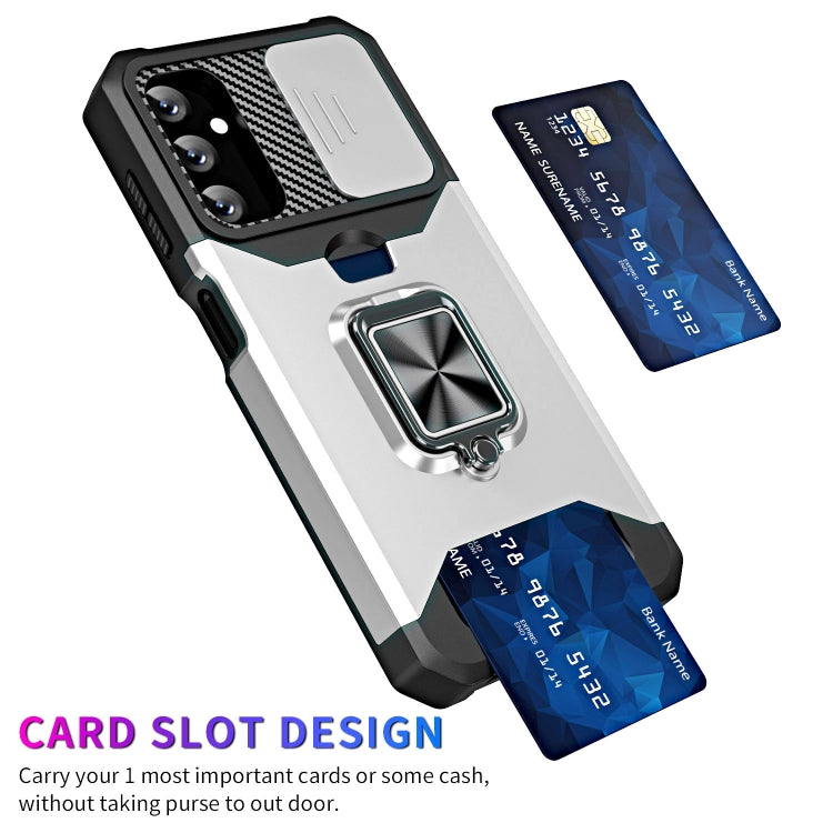 Estuche Deslizante Samsung Galaxy A14 5G Camshield con Soporte y Ranura para Tarjeta (Plata)