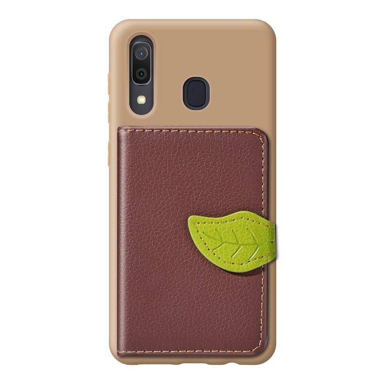 Estuche de Teléfono TPU Litchi Pattern + Soporte de Billetera Galaxy A30 (Marrón)