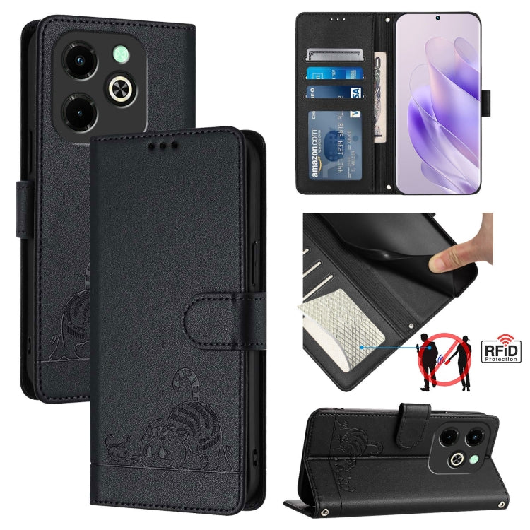 Estuche para Infinix Hot 40I de Cuero Rfid con Patrón en Relieve y Cordón (Negro)