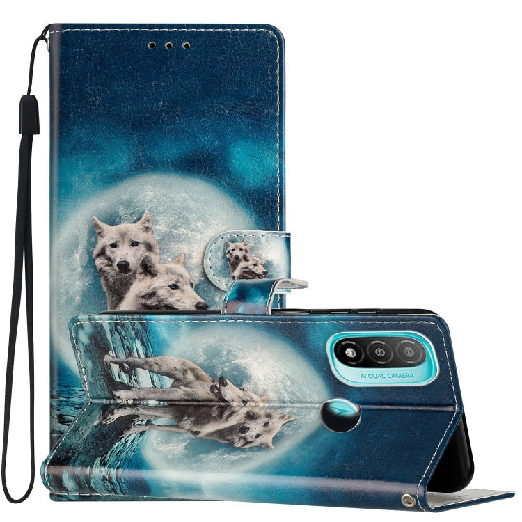 Estuche para Motorola Moto E20/E30/E40 de Cuero con Dibujo a Color (Twin Wolves)