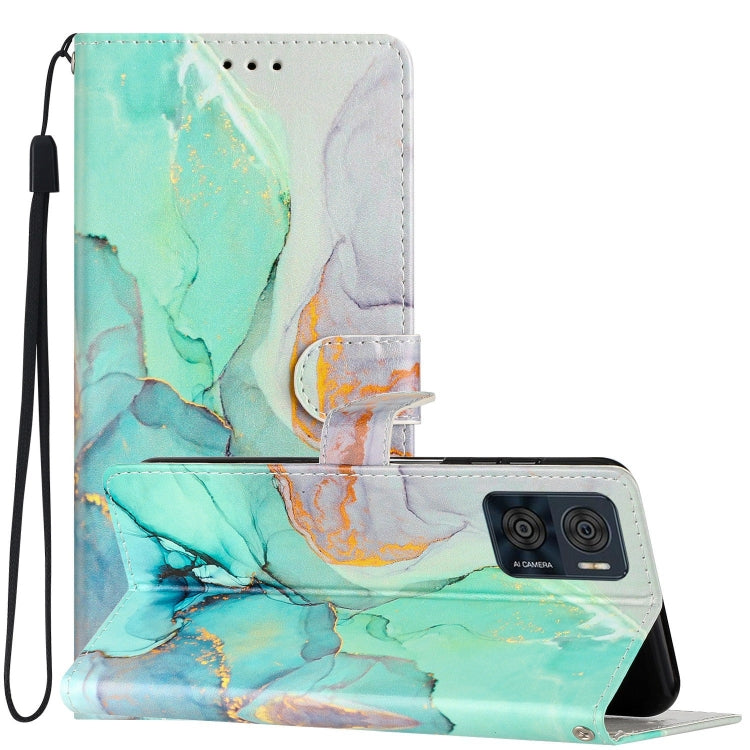 Estuche para Motorola Moto E22 de Cuero con Dibujo Coloreado Mármol Verde