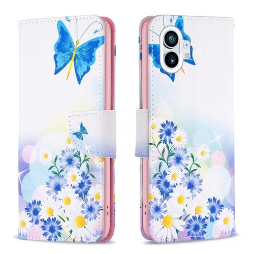 Estuche para Nothing Phone 1 de Cuero con Patrón de Dibujo Coloreado (Mariposas)