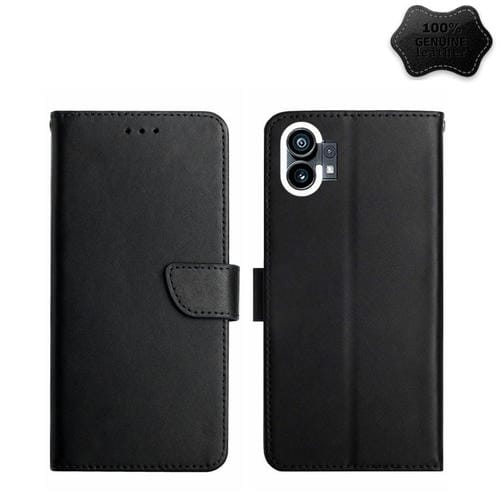 Estuche para Nothing Phone 1 con Tapa Horizontal a Prueba de Huellas de Cuero Genuino (Negro)