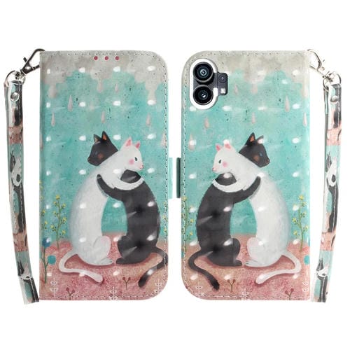 Estuche para Nothing Phone 1 de Cuero con Tapa Horizontal y Diseño 3D (Gato Blanco y Negro)