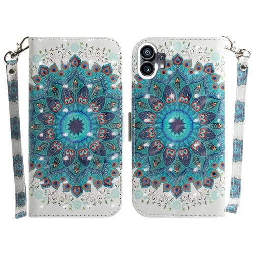 Estuche para Nothing Phone 1 de Cuero con Tapa Horizontal y Diseño 3D (Corona de Pavo Real)