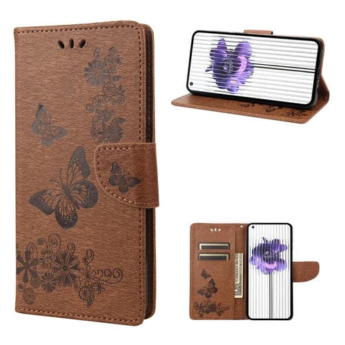 Estuche para Nothing Phone 1 de Cuero con Tapa Horizontal y Relieve de Mariposa (Marrón)