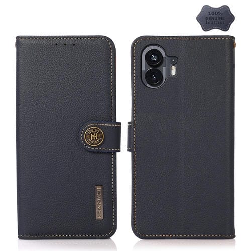 Estuche para Nothing Phone 2 Khazneh Custer de Cuero Genuino con Protección RFID (Azul)