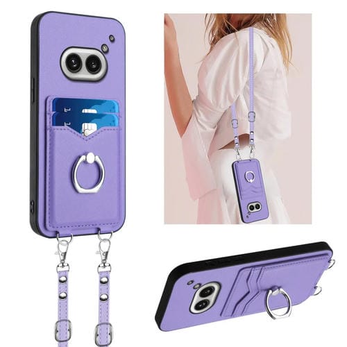 Estuche para Nothing Phone 2A R20 con Soporte, Tarjeta, Anillo Cruzado y Cuerda (Púrpura)