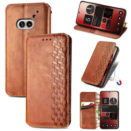 Estuche para Nothing Phone 2 Cuero Magnético Prensado Cuadrícula Cúbica (Marrón)