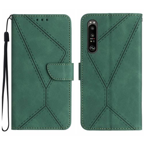 Estuche para Sony Xperia 5 III de Cuero con Costuras en Relieve (Verde)