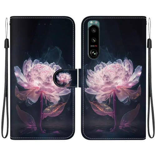 Estuche para Sony Xperia 5 III de Cuero con Dibujo Coloreado y Textura de Cristal (Peonía Púrpura)