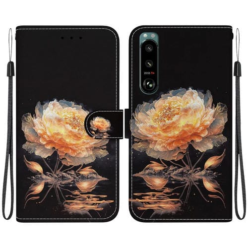 Estuche para Sony Xperia 5 III de Cuero con Dibujo y Textura de Cristal (Peonía Dorada)