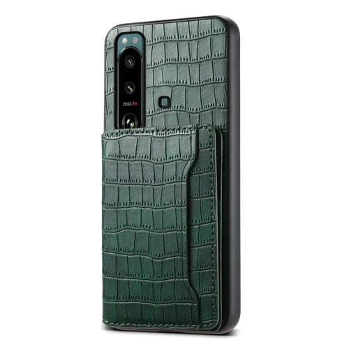 Estuche para Sony Xperia 5 III con Diseño de Bolsa para Tarjetas Textura de Cocodrilo (Verde)