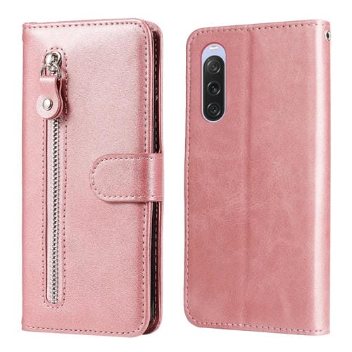 Estuche para Sony Xperia 10 V de Cuero con Cremallera y Textura de Becerro (Oro Rosa)
