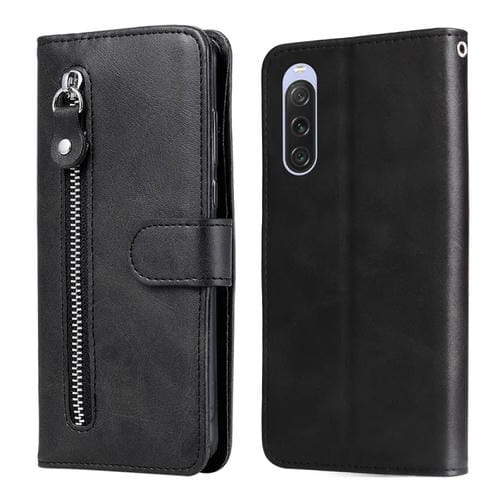 Estuche para Sony Xperia 10 V de Cuero con Cremallera y Textura de Becerro (Negro)